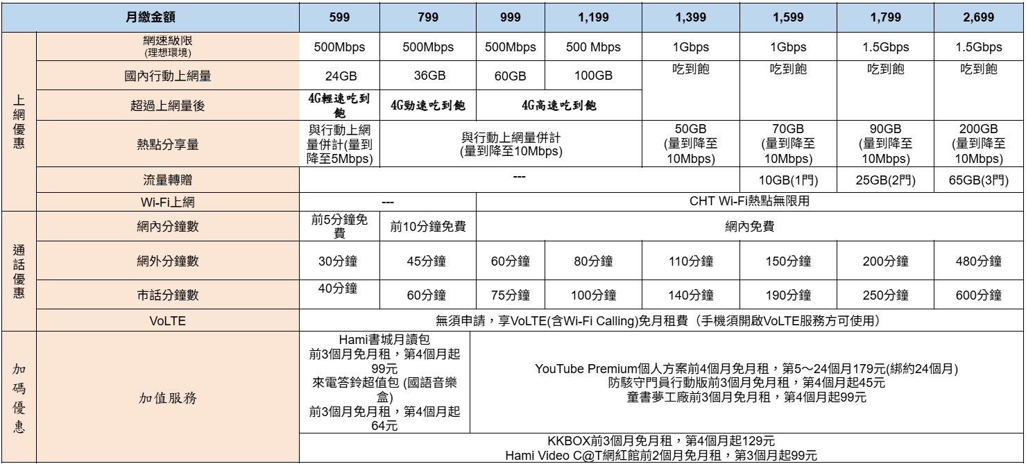 ▲中華電信精采 5G 方案內容。
