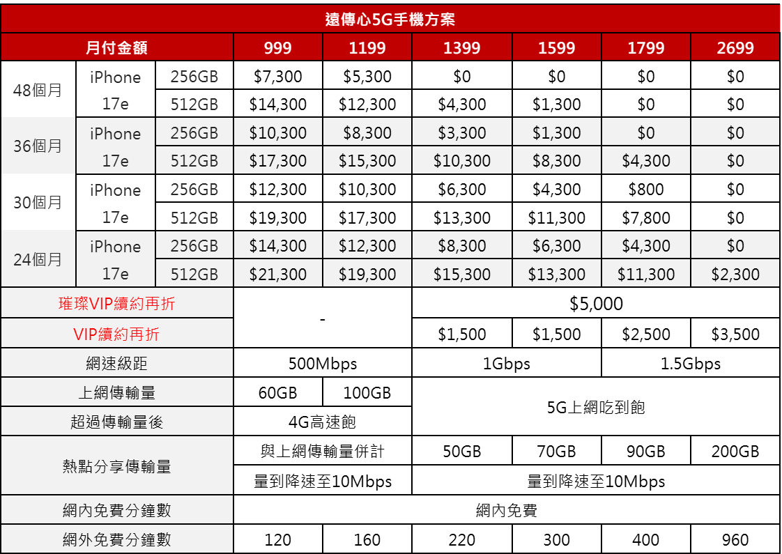 ▲遠傳電信 iPhone 17e 心 5G 手機方案。