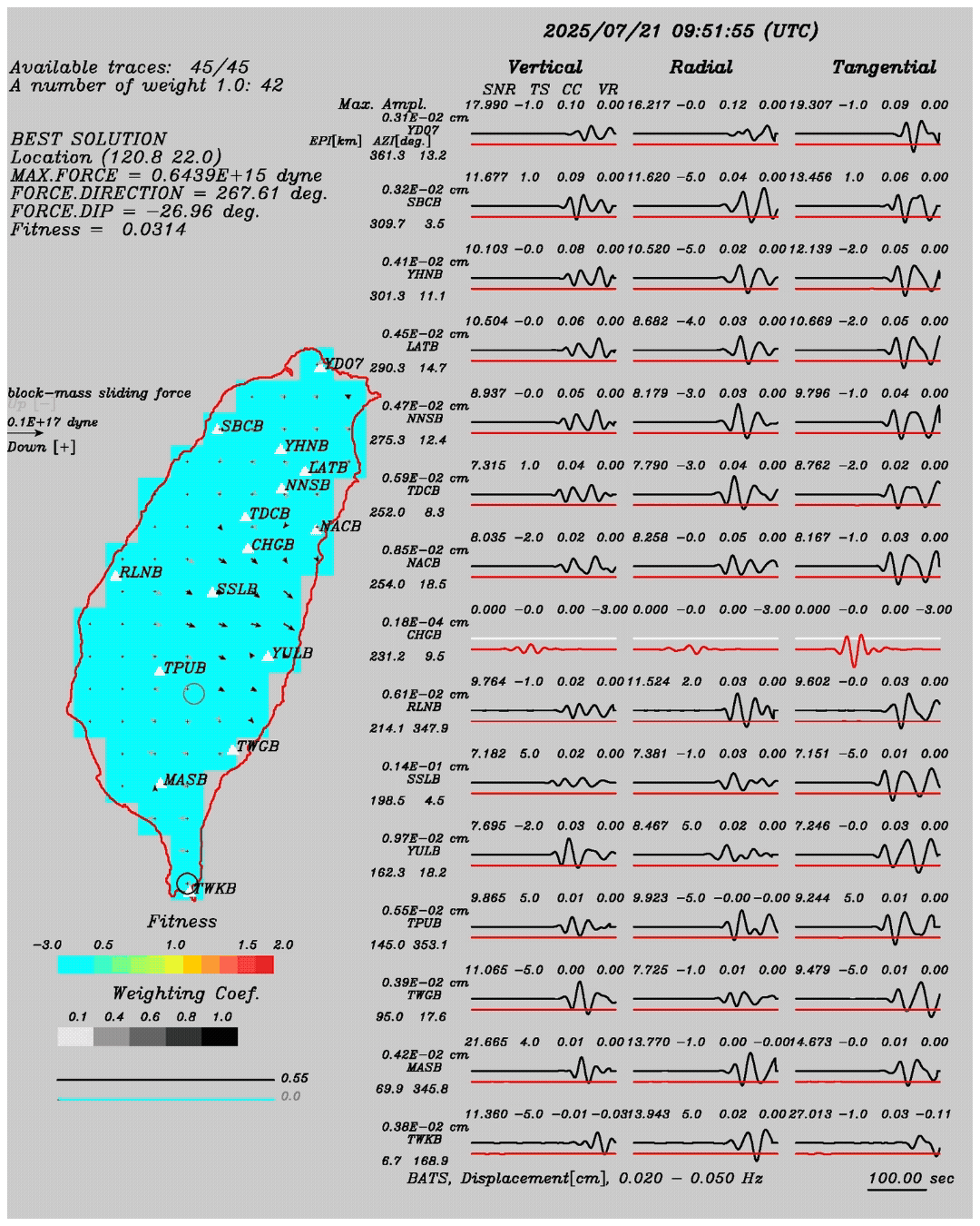 關鍵時刻(第0天):7月21日下午5點53分,微地動系統偵測到震矩規模4.9的地動